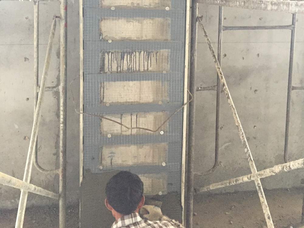 施工工藝:粘貼炭纖維、灌漿料、鋼支撐轉換